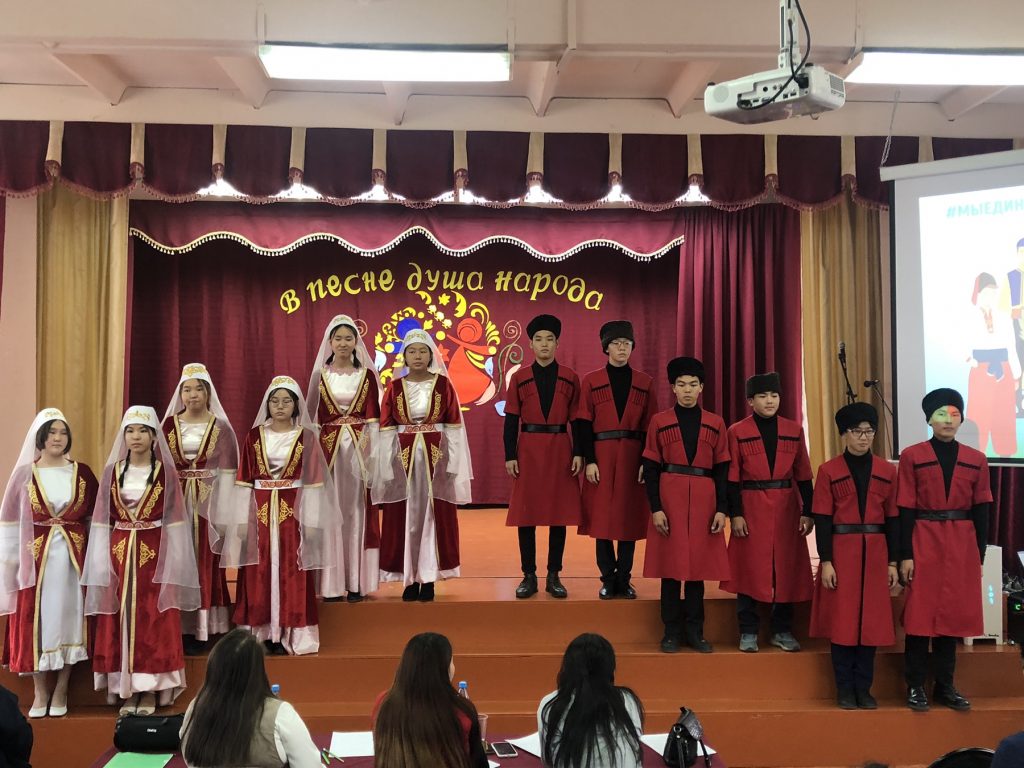В рамках традиционного городского фестиваля национальных культур «Найырал», посвященного Дню народного единства, 25 октября на базе нашей гимназии прошел восхитительный конкурс музыкального творчества «Песни народов России» по 3 номинациям: соло, дуэт, ансамбль в 2 возрастных категориях.