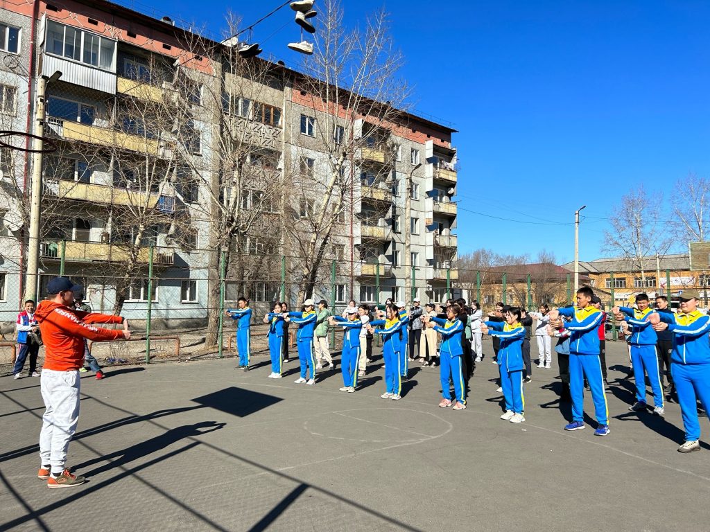 РДДМ «Движение первых» в рамках Всероссийской акции «Будь здоров» на базе нашей школы, на спортивной площадке, на свежем воздухе провели зарядку, встречу с учащимися 8Б, 8В классов и товарищеский матч по баскетболу с именитыми спортсменами.