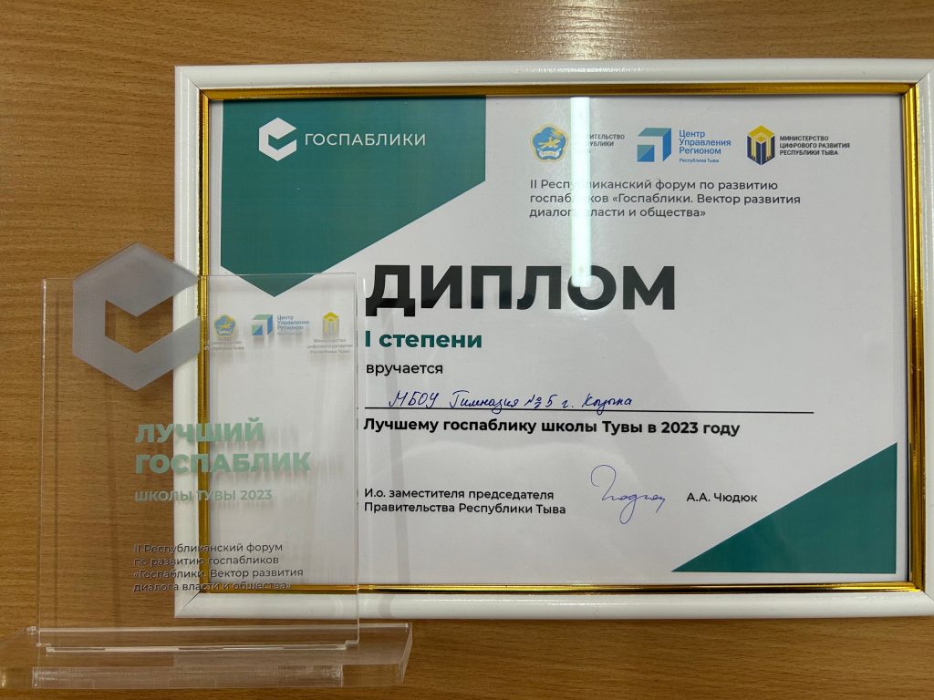 16 декабря, на II Республиканском Форуме по развитию Госпабликов Центр управления регионом подвел итоги работы в Госпабликах учреждений Тувы. И наша гимназия по системе образования стала лучшей.