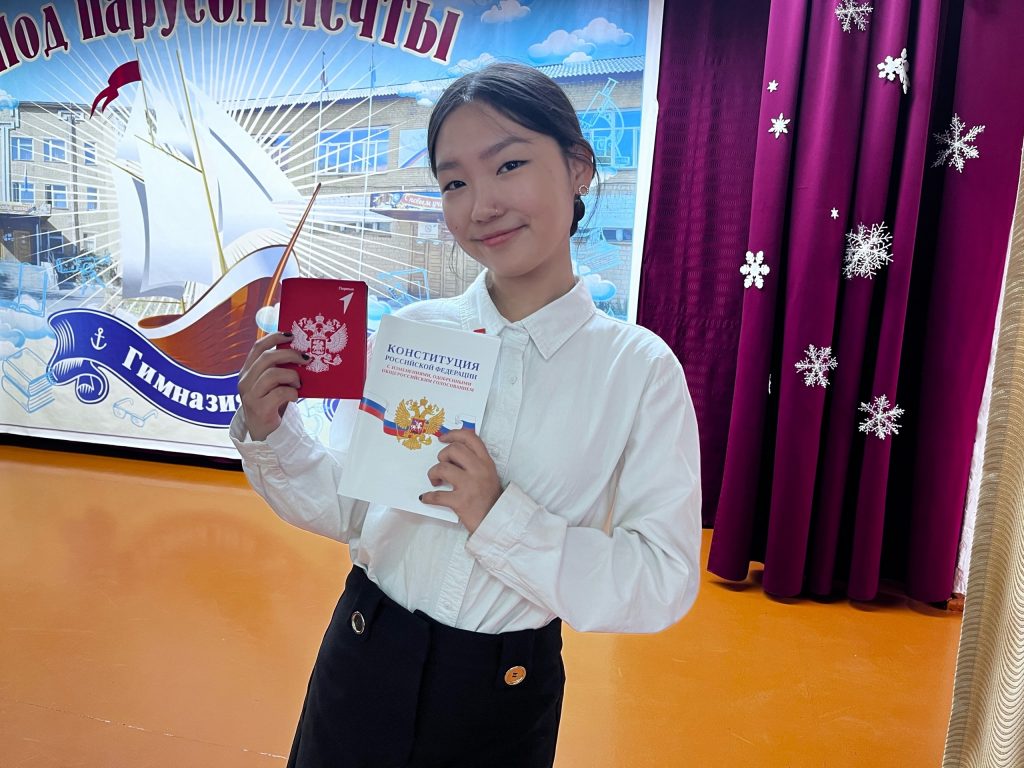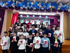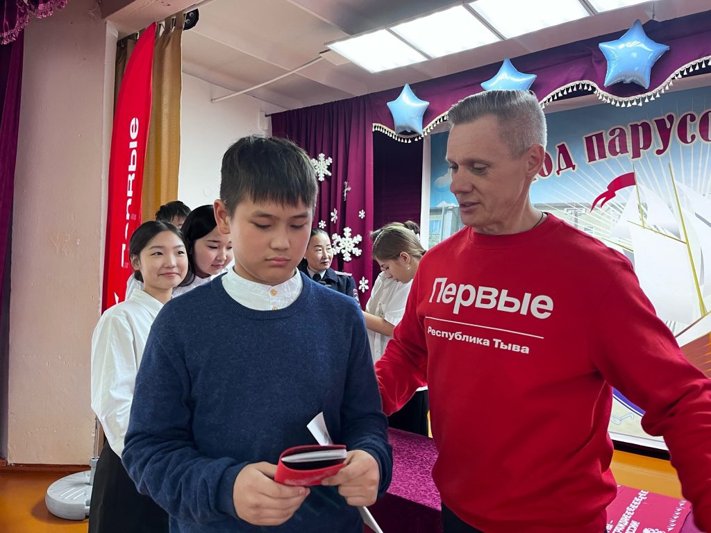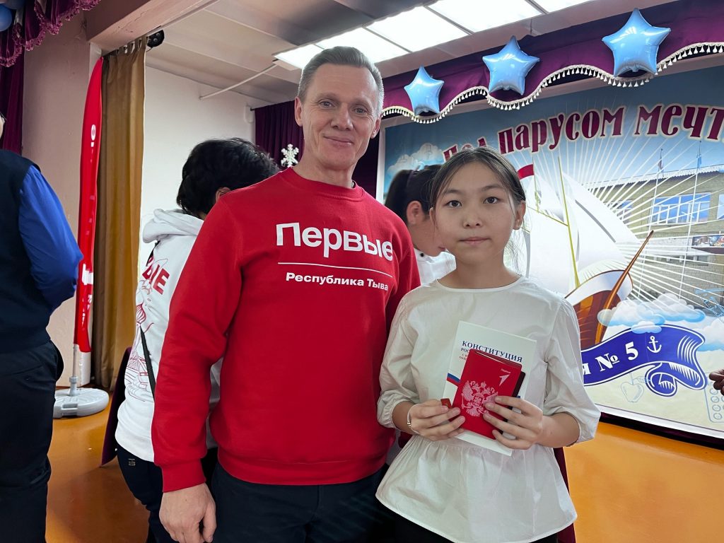 Всем участникам торжественно вручили паспорта РФ вместе с обложкой и значком общероссийского движения детей и молодежи «Движение первых» по Республике Тыва.