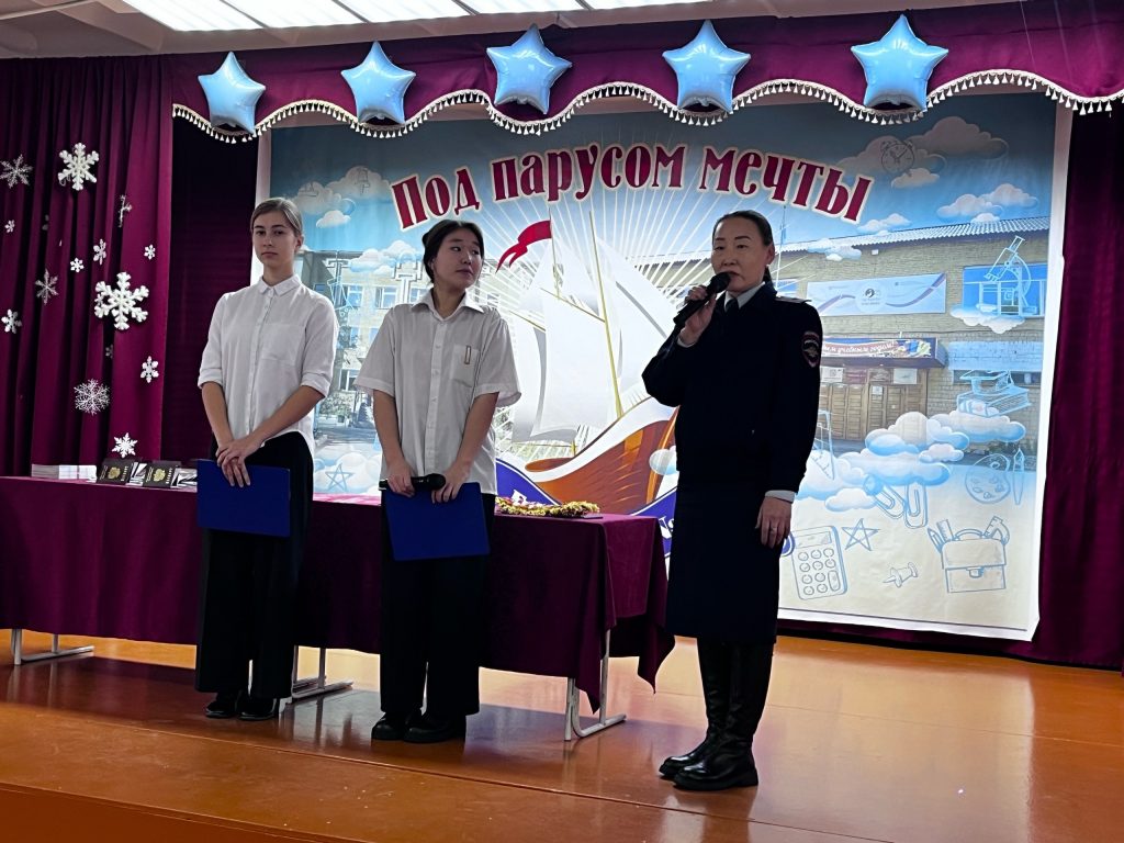 Были приглашены Заместитель председателя регионального отделения общероссийского движения детей и молодежи «Движение первых» по Республике Тыва Кыял Шолбановна Даржай и сотрудник Управления по вопросам миграции МВД по Республике Тыва майор Любовь Олчат-ооловна Кужугет. Они поздравили ребят с получением паспорта и объяснили, что паспорт-это наша причастность к великой истории России, к ее культуре и традициям. Это наш долг перед старшими поколениями, которые строили и защищали нашу Родину.