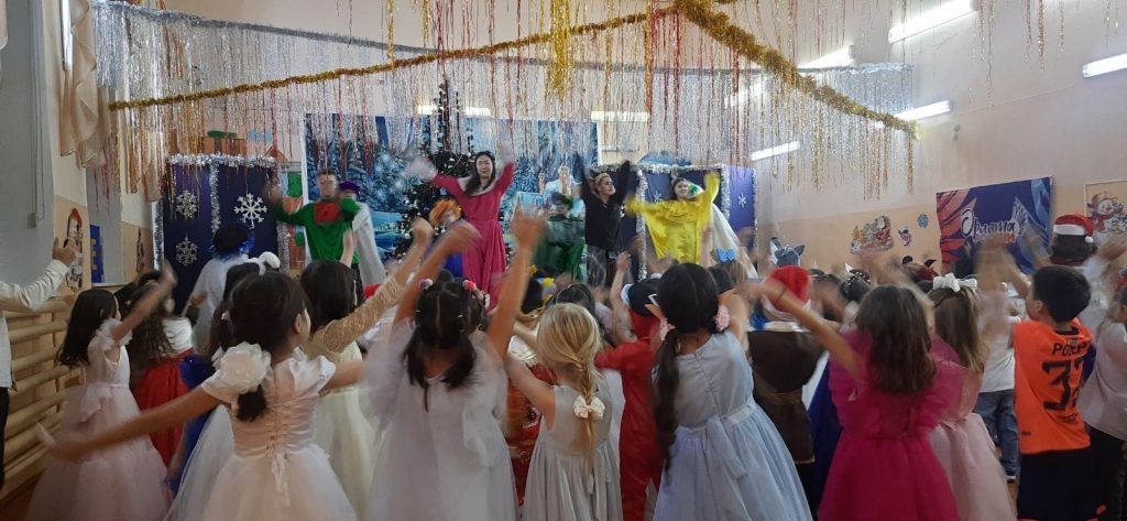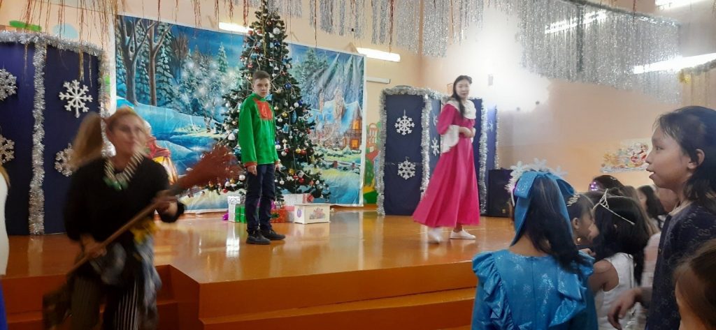 Ребята с огромной радостью встретили самых долгожданных гостей на празднике – Деда Мороза и Снегурочку, Бабу-Ягу и Кощея Бессмертного, Водяного, Кота-Баюна, Соловья — Разбойника. Зрители, затаив дыхание, смотрели, как Иванушка и Василиса борются с нечистой силой, и чтобы их победить и собрать ключи, вместе с детьми пытаются выполнить желание героев. Обучающиеся помогли сказочным героям разгадать загадки о зиме, о Новом годе, танцевать флешмоб и петь песни.