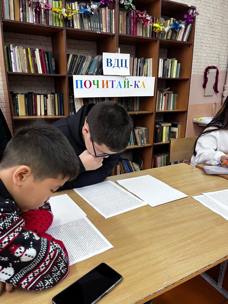 Ура! Каникулы! ВДЦ «ПОЧИТАЙ-КА» ВДЦ «ПОЧИТАЙ-КА» в период зимних каникул вчера открыл свои двери на базе нашей школьной библиотеки. 4 января вместе с детьми прочитали рассказ А.П. Платонова «Юшка», сделали портрет главного героя и разгадывали разные кроссворды.