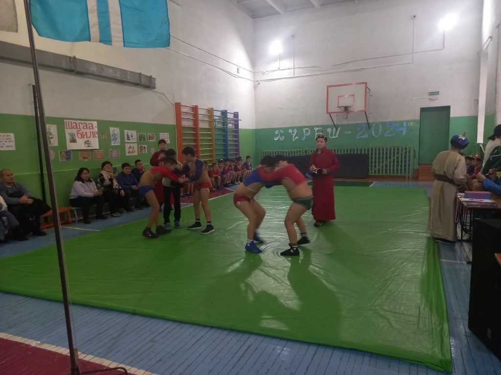 Сегодня в спортивном зале начальной школы прошёл турнир по национальной борьбе «Хуреш», приуроченный национальному празднику «Шагаа — 2024». Всего в турнире приняли участие около 150 учащихся в 4 возрастных категориях (1 классы, 2 классы, 3 классы, 4 классы). Массовостью отличились 1 и 2 классы, можно сказать, что «добрая половина» мужского состава классов пришла состязаться в национальной борьбе.