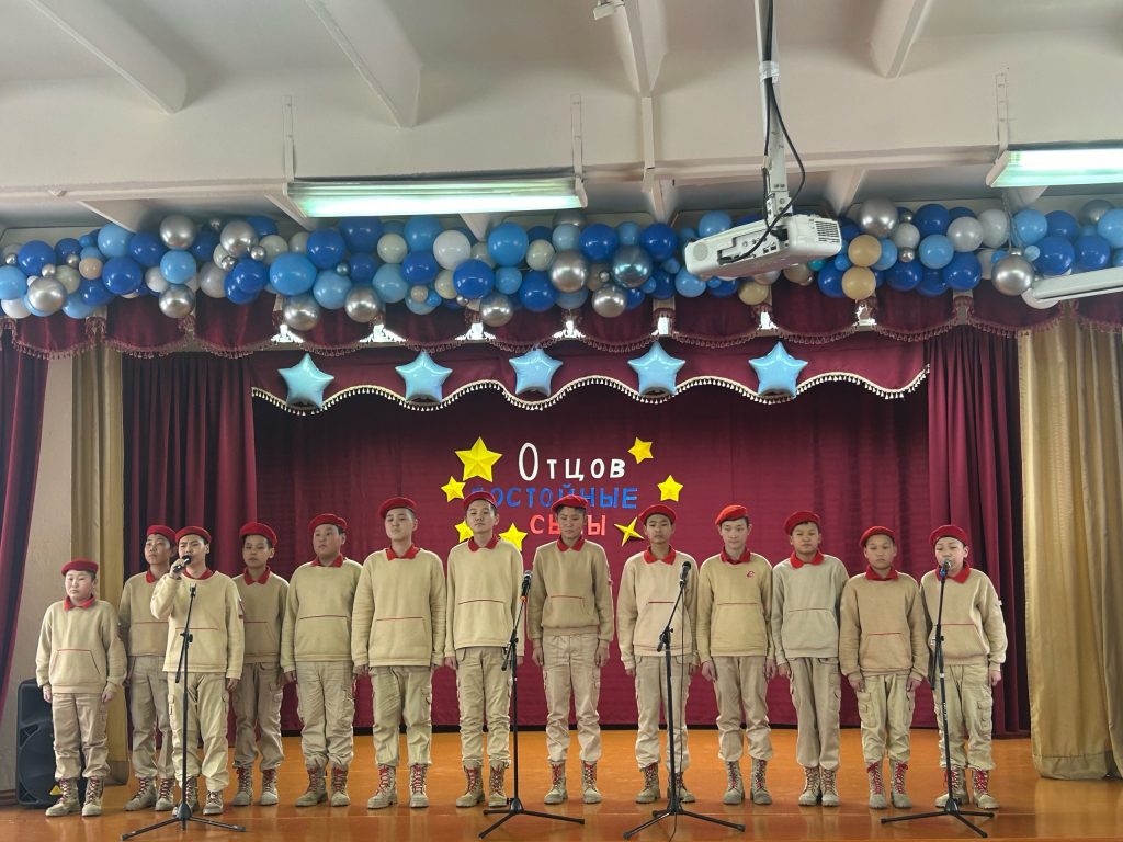 В рамках месячника «Отец. Отчество. Отечество» Департамент по образованию Мэрии города Кызыла на базе гимназии провели конкурс патриотической песни «Отцов достойные сыны» участниками конкурса были исполнены очень красивые песни о солдатах, о Родине, о патриотах. Определены победители и призеры в номинациях соло, дуэт, трио и ансамбль.