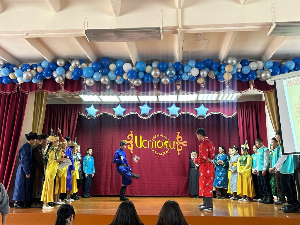 Содружества 8х классов познакомили с традициями, обрядами праздников «Шагаа», «Масленица», «Иван-Купала». Представили обряды, рассказали о истории возникновения праздников, исполнили танцы и песни. Угощали друг друга угощениями, блинами, чаем с молоком, боорзак.