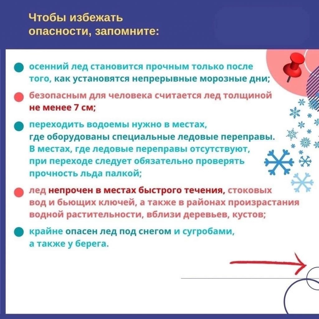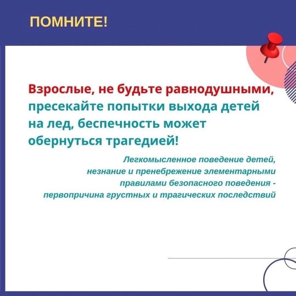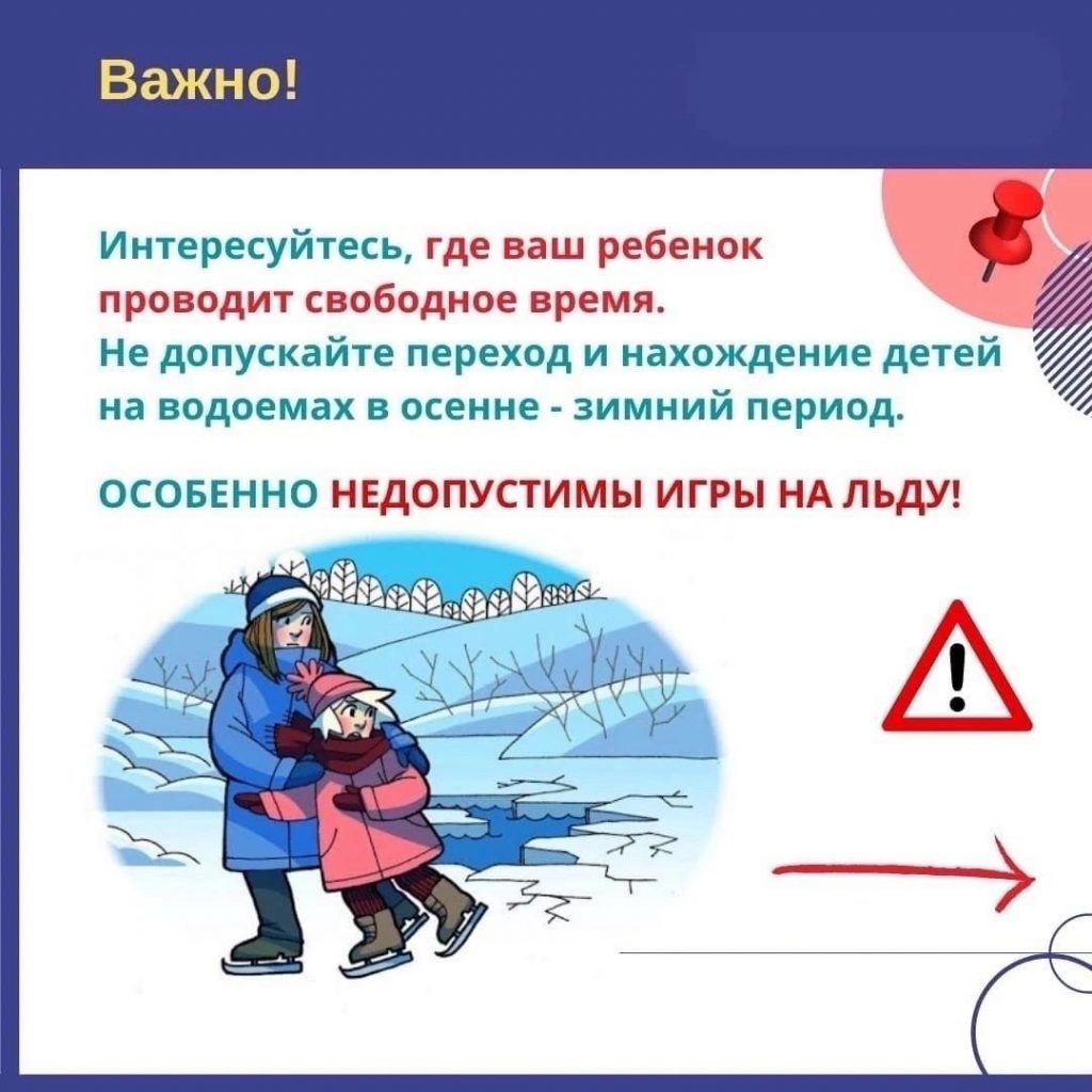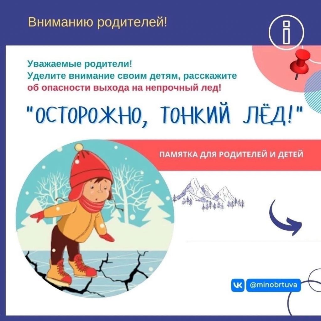 Безопасность Осторожно, тонкий лёд! Уважаемые родители, дорогие ребята! Зачастую в весенний период тонкий лёд становится причиной различных происшествий на воде. Не рискуйте жизнью — не выходите на тонкий лёд! Рекомендуем ознакомиться с памяткой по безопасности на льду. Сохраняйте себе и делитесь с близкими!