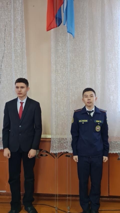 Право поднять флаги было представлено учащимся 10 класса — Егору 10Е и Тензину 10Д на линейке участвовали 9В, 9И, 10Д, 10Е, 11Б, 11Г, 11Д. Наградили команды победители городских конкурсов