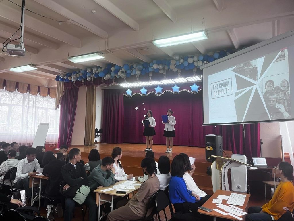 19 апреля наша страна отмечает – День единых действий в память о жертвах преступлений против советского народа, совершенных нацистами и их пособниками в годы Великой Отечественной войны. Советник по воспитанию провела интеллектуальную игру «Без срока давности» среди команд 10х классов .