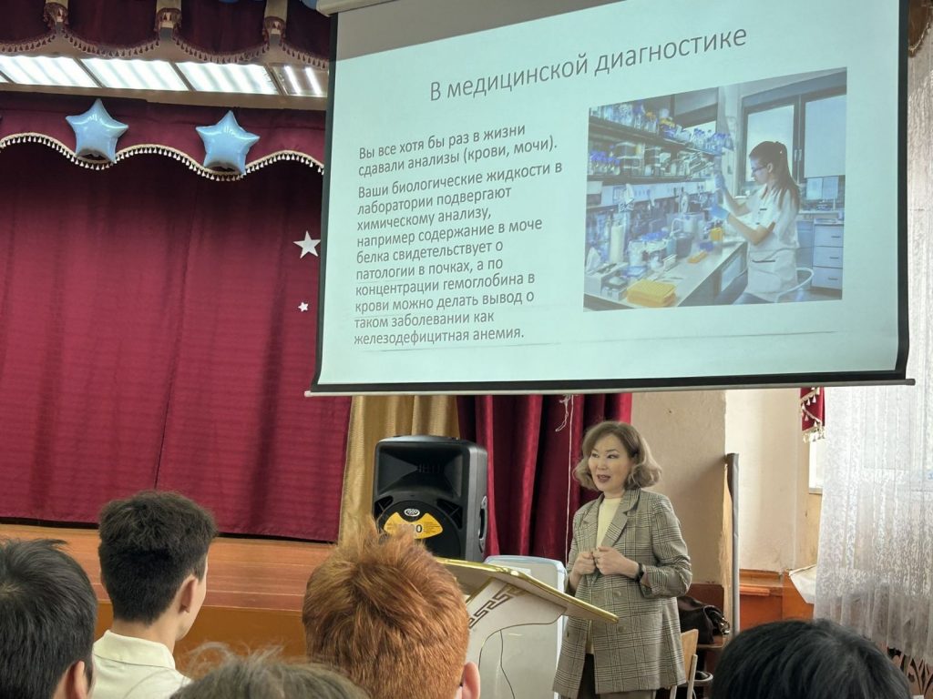 Также лектор ознакомила старшеклассников с направлениями подготовки естественно-географического факультета, на которые объявлен прием в 2024 году и с результатами каких ЕГЭ принимаются на направления подготовки «Химия» и «Биология» в ТувГУ.