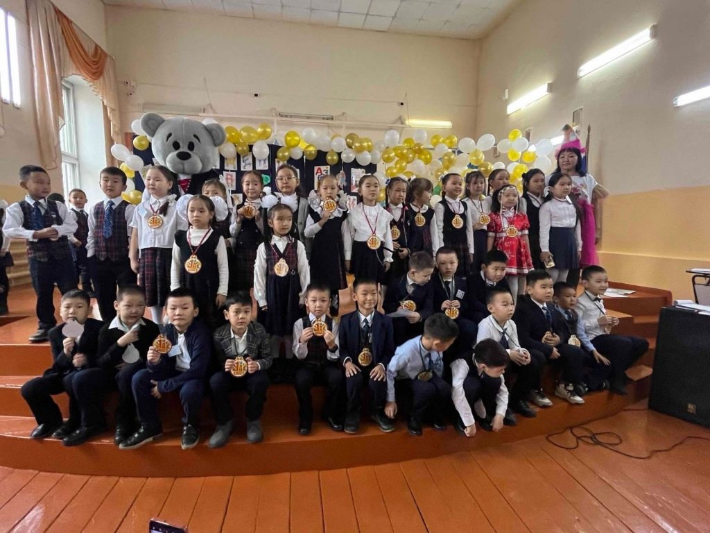Первоклассникам пожелали хорошо учиться, никогда не ходить в школу с невыученными уроками, учиться только на пятерки, быть старательными и воспитанными.
