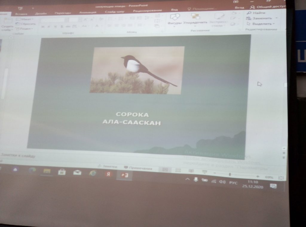 Для учащихся 3 «Д» класса классный Руководитель Оюн Р.К. провела викторину «Зимующие птицы Тувы», заранее подготовив видеоэкскурсию в национальном музее о птицах. Учащиеся посмотрели видео в zoom и с удовольствием участвовали в викторине. Получили задание на каникулы изготовить кормушки для птиц!