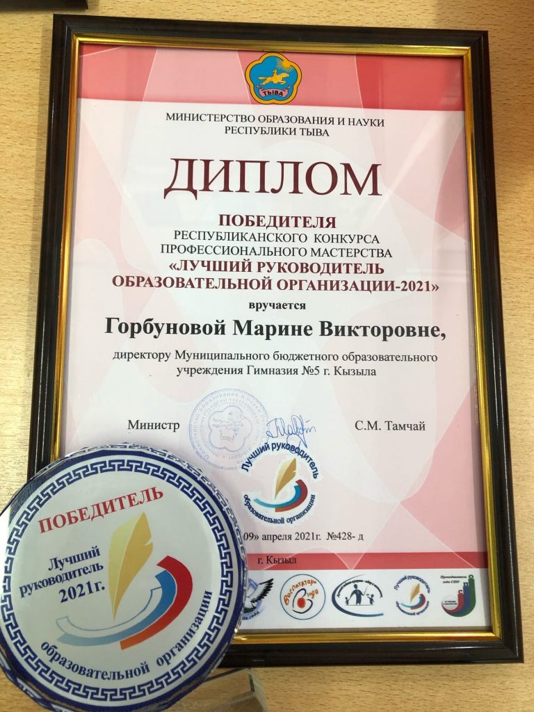 Лучший руководитель образовательной организации Республики Тыва — наш директор гимназии 5 Горбунова Марина Викторовна. ГОРДИМСЯ! Марина Викторовна руководит одной из самых больших школ в России. Педагогический коллектив — 216 человек, 3565 учеников! Поздравляем нашу Марину Викторовну с достойной победой!!
