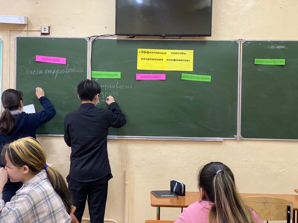 В рамках недели психологии в гимназии проведена психологическая игра с элементами тренинга «Эффективные способы разрешения конфликтов » с целью содействие в осознании облучающимися своего поведения в конфликте, формирование умения позитивно разрешать конфликты.