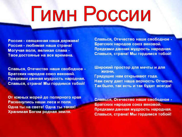 суверенитета. Существует триединство символов – герб, флаг, гимн. В Российской